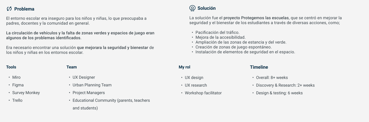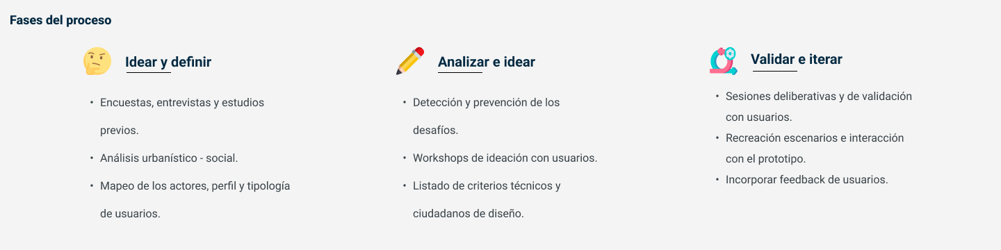 Llevé a cabo workshops de cocreación con expertos en la materia: urbanístas, arquitectos, sociólogos, etc...) donde se presentamos los resultados y cocreamos soluciones innovadoras para abordar los insights identificados.