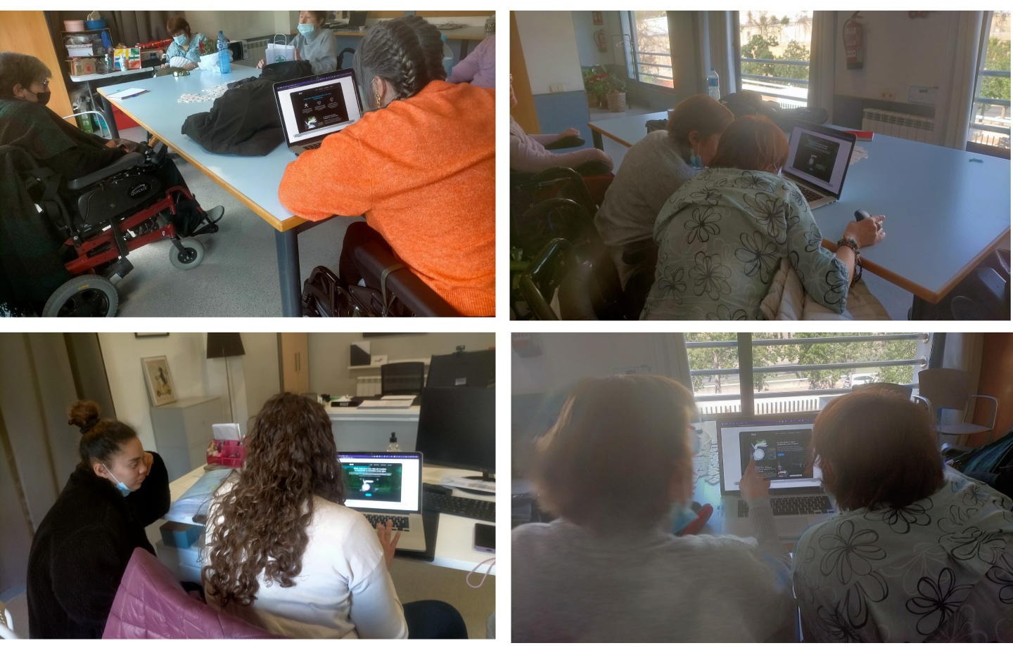 Llevé a cabo focus group con 5 usuarios de una residencia de adultos, etnografía digital y shadowings, acompañando a los usuarios en una ruta hacia un lugar accesible. Donde compartieron sus experiencias y señalaron varias deficiencias en las sillas de ruedas eléctricas: la falta de amortiguadores, baterías de corta duración y dificultades de maniobra, etc...